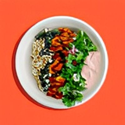 Protein Of Your Choice Topped With Sriracha Queso + Red Onion + Green Onion + Homemade Cucumber Kimchi.